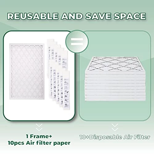 - 【Reusable Frame】: air filter comes with a manual reusable frame that saves your money and storage space. Compared to the market’s 10 boxes of 10 pieces of disposable filter paper, our configuration includes one box of ten foldable filter papers that can be easily stored. Every time you need to change the filter, simply replace the inner paper without having to throw away the entire frame.